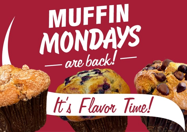 So, let’s make every Monday in April a day to look forward to. Come in, enjoy your favorite muffins, or discover new ones. Pair them with a hot or iced coffee or cold brew, made just the way you like it.